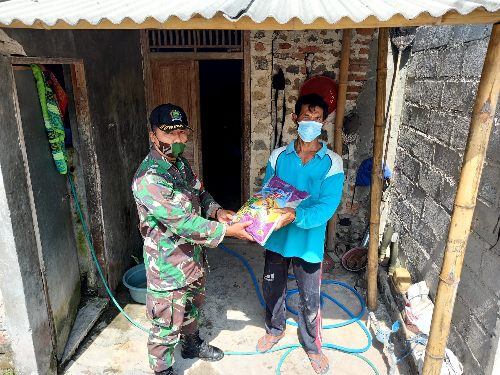 Babinsa Desa Ngaglik Sertu Soetrisno membagikan sembako kepada warga kurang mampu di Desa Ngaglik Kecamatan Parang Kabupaten Magetan.