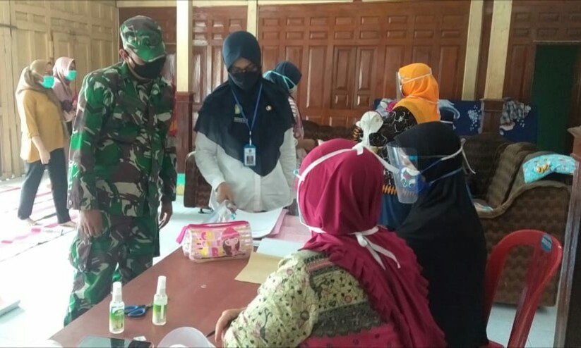 Magetan – Guna mewujudkan kesehatan masyarakat khususnya balita, Babinsa Desa Temenggungan Koramil Tipe B 0804/07 Karangrejo Sertu Priyanto melakukan pendampingan Pos Pelayanan Terpadu (Posyandu) bertempat di balai Desa Temenggungan Kecamatan Karas Kabupaten Magetan. Rabu (11/08/2021)