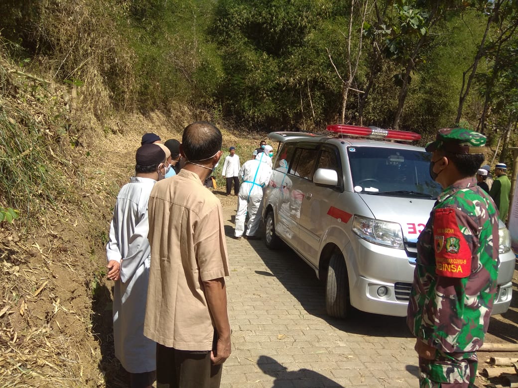 Warga tersebut berinisial S (78), ia dinyatakan positif Covid-19, Proses pemakaman pun dilakukan secara prokes oleh Tim Gugus Tugas Covid-19, “ucap Peltu Ari”.
