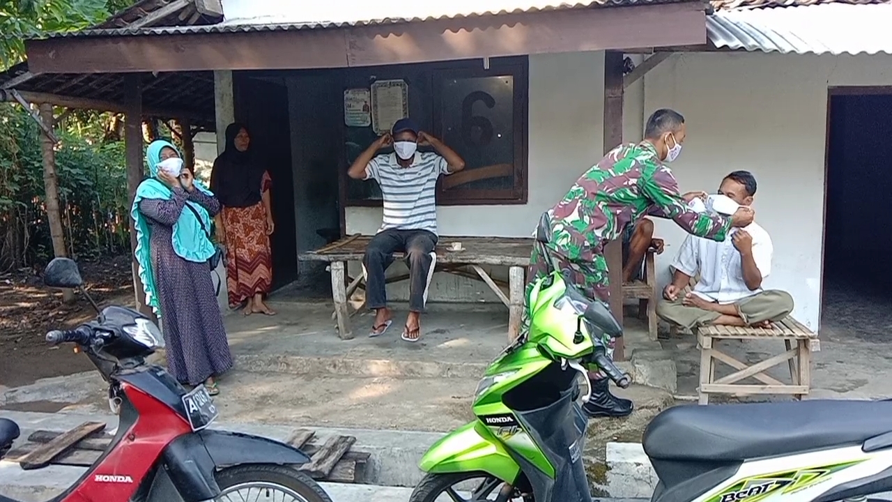 Babinsa Koramil 0804/07 Karangrejo wilayah desa Geplak dalam hal ini Sertu Suwarsono selalu bekerja pihaknya terus menggalakan bagi-bagi masker secara gratis diwilayah binaanya. Dengan mendatangi sejumlah Rt diwilayah binaanya, saat bertemu warga yang tidak mengenakan masker Babinsa menghimbau dan memberikanya masker secara gratis.
