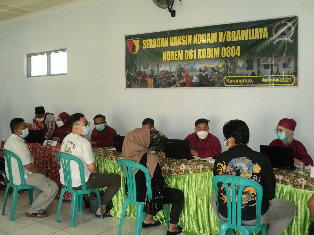 Magetan. Untuk Meratakan Kebutuhan Vaksinasi Bagi Masyarakat Di Kabupaten Magetan, Kodim 0804/Magetan Kembali Melakukan Serbuan Vaksinasi. Kali Ini Dipusatkan Di Desa Taji Kecamatan Karas, Kabupaten Magetan, Selasa (24/8/2021).