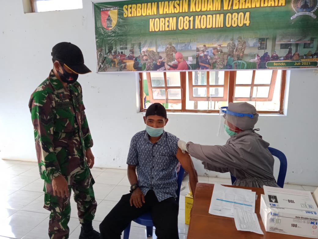 Kapten Inf Arif Wahyu Jatmika Danramil Tipe B 0804/13 Bendo menyampaikan hari ini kita bersama puskesmas Bendo bekerjasama melaksanakan vaksinasi Covid 19 Dosis ke 2 bagi masyarakat umum, dengan jenis vaksin Astrazeneca, kegiatan ini akan dilaksanakan selama dua hari yakni tanggal 30 Agustus 2021 dengan sasaran 230 dosis, dan 31 Agustus 2021 dengan sasaran 310 Dosisi, sehingga total 540 dosis