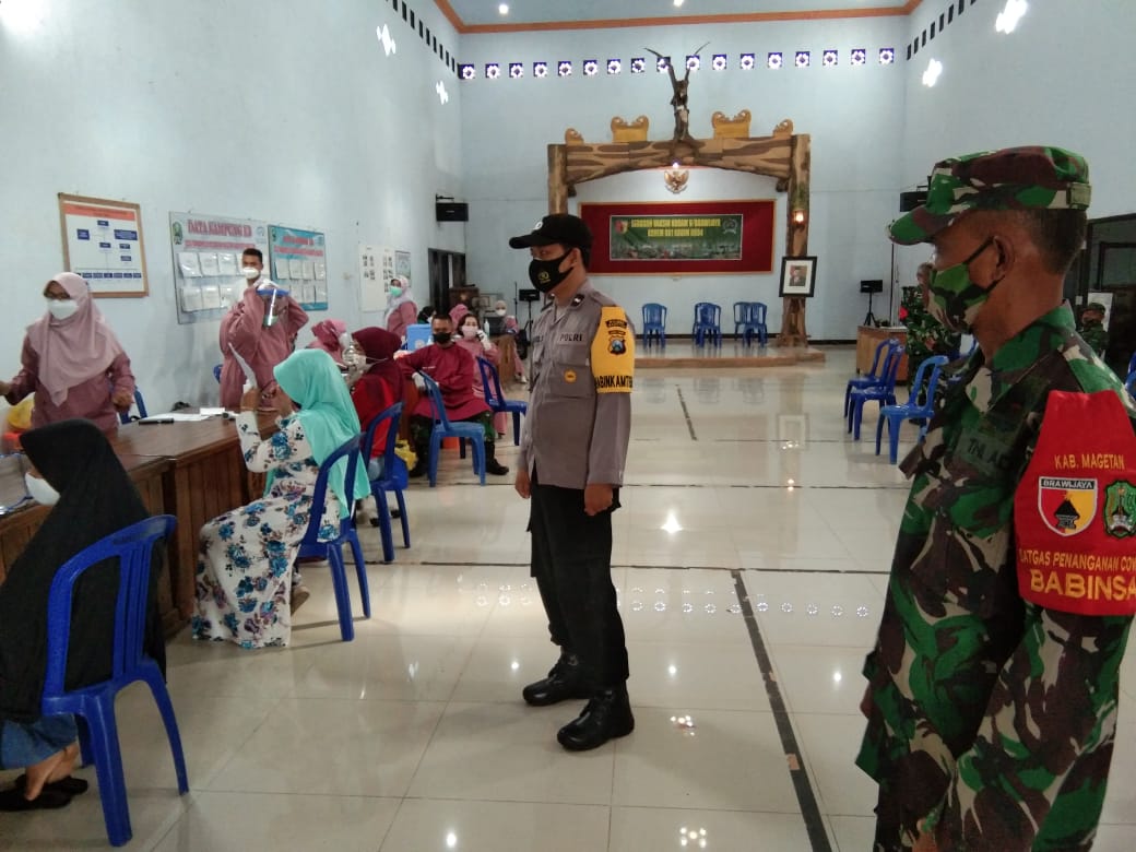 Magetan – Koramil Tipe B 0804/01 Magetan mensukseskan program serbuan vaksinasi tahap II menggunakan jenis vaksin Corona Vac yang digelar di Desa Tambakrejo Kecamatan Magetan Kabupaten Magetan Provinsi Jawa Timur. Rabu (04/08/2021)
