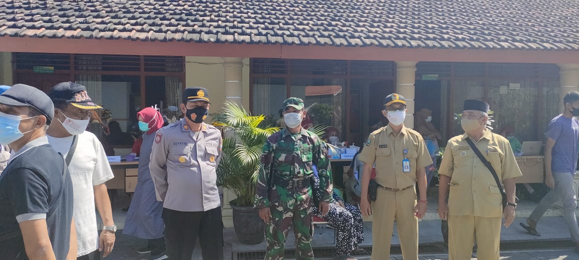 Magetan. Komandan Koramil Tipe B 0804/10 Kawedanan Kapten Inf Sarpan bersama tiga pilar memantau langsung pelaksanaan Serbuan Vaksinasi Covid-19 tahap 1 pondok pesantren Subulus Safi’in Desa Pojok Kecamatan Kawedanan, yang dilaksanakan di Puskesmas Kawedanan dan Balai Desa Ngunut sejumlah 350 orang, pelaksanaan pada Hari Selasa (31/08/2021) .