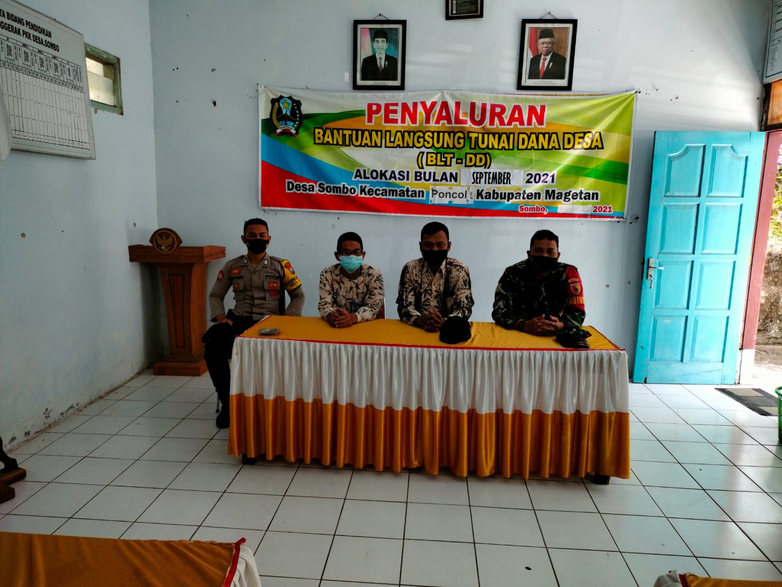 Magetan . Babinsa koramil Tipe B 0804/05 poncol sertu Hartono melaksanakan pendampingan penyaluran bantuan langsung tunai dana desa (BLT DD) kepada warga sejumlah 9 kk terdampak Covid-19 di Aula kantor Desa Sombo Kec poncol kab magetan, Jumat(03/09/2021)