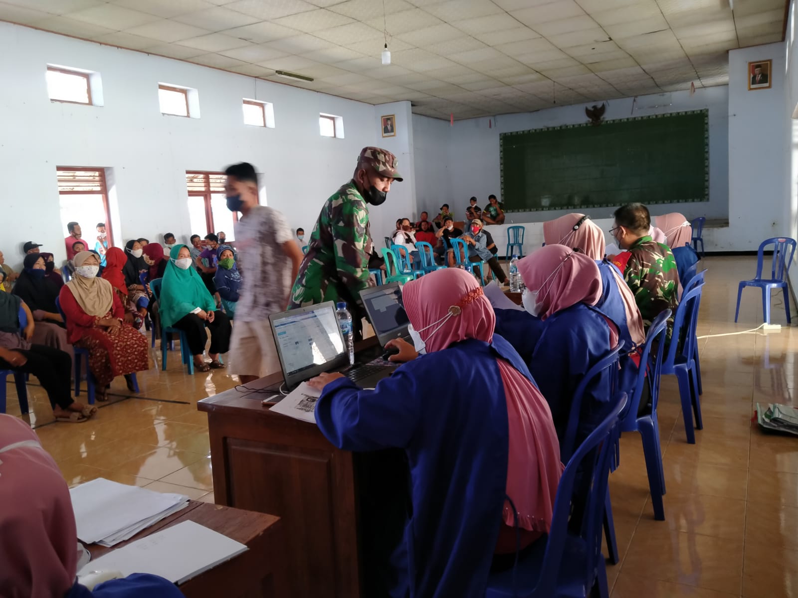 Magetan – Guna mendukung percepatan program vaksinasi, Koramil Tipe B 0804/02 Plaosan bersama Nakes Puskesmas menggelar serbuan vaksinasi Dosis pertama kepada warga masyarakat. Dengan pelaksanaan di bagi empat tempat. Rabu, (29/09/2021).