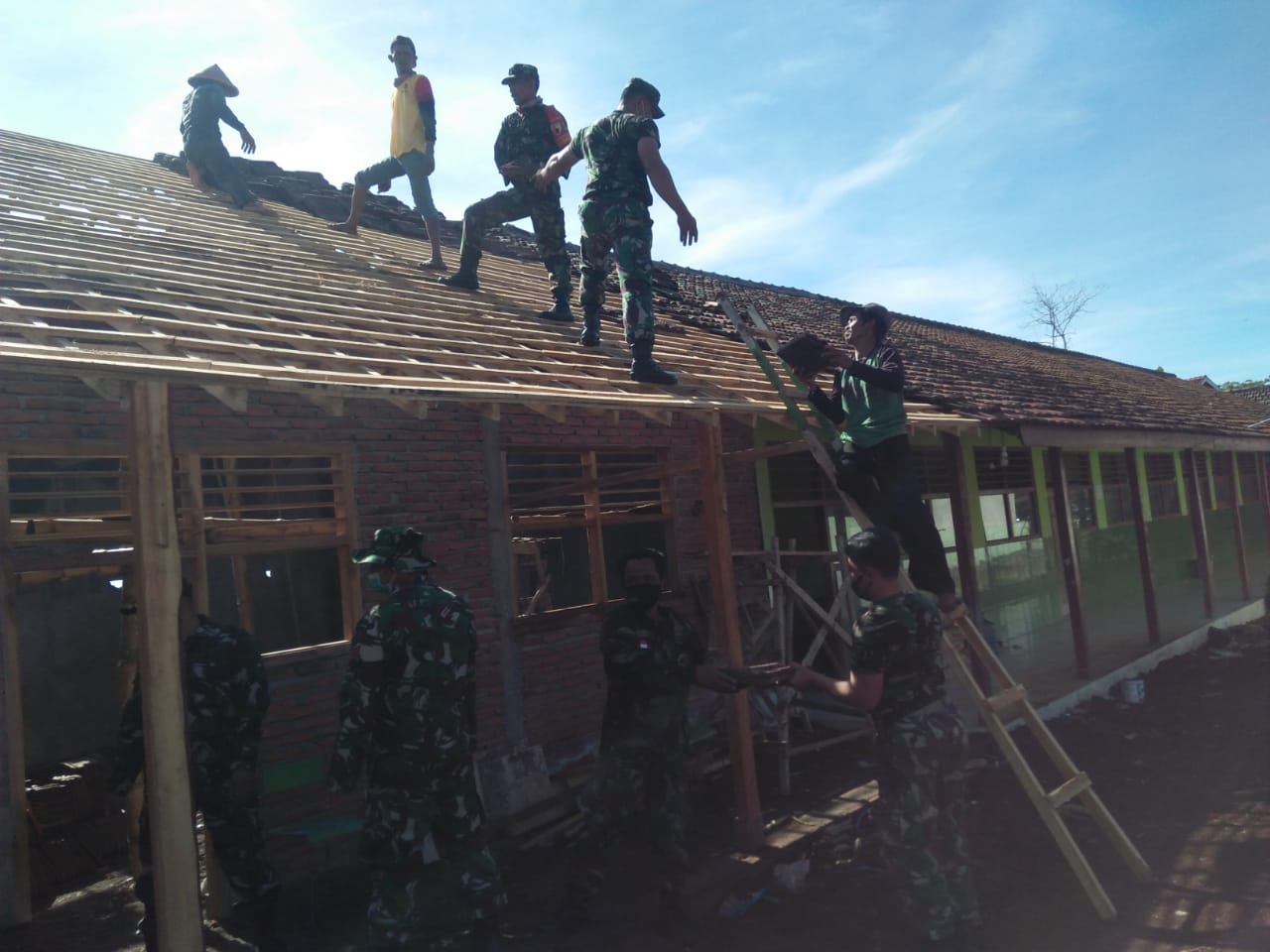 “Meski dengan segala keterbatasan yang ada, kami merasa terbantu sekali dengan hadirnya TNI dan warga membatu perbaikan bangunan sekolah ini,” tutupnya. (Yanto/R03)