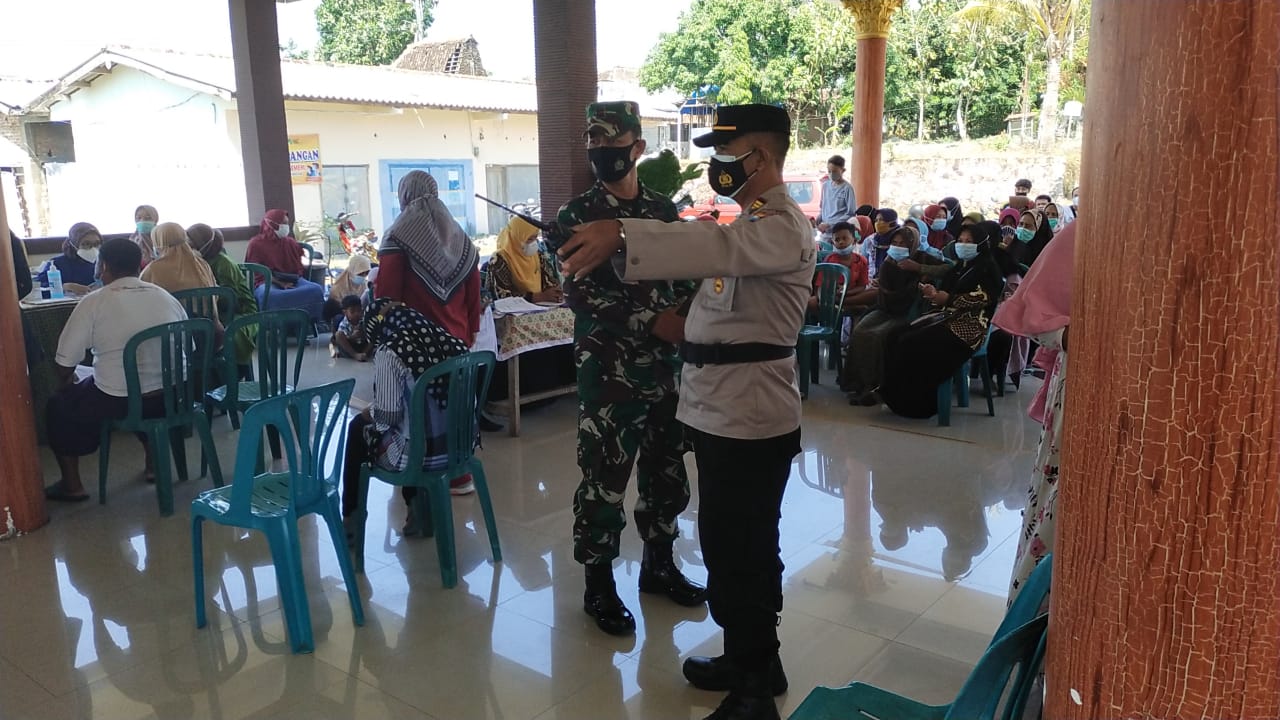 Magetan – Komandan Koramil Tipe B 0804/01 Magetan Kodim 0804 Magetan Kapten Caj Jemani bersama Babinsa jajarannya kawal dan amankan pelaksanaan kegiatan penyuntikan Vaksin Covid-19 oleh Dinas UPTD Puskesmas Ngariboyo ,Puskesmas Candirejo dan Poskes Kodim 0804 Magetan yang bertempat di wilayah kecamatan Ngariboyo dan Kecamatan Magetan Kabupaten Magetan.Kamis (30/09/2021)