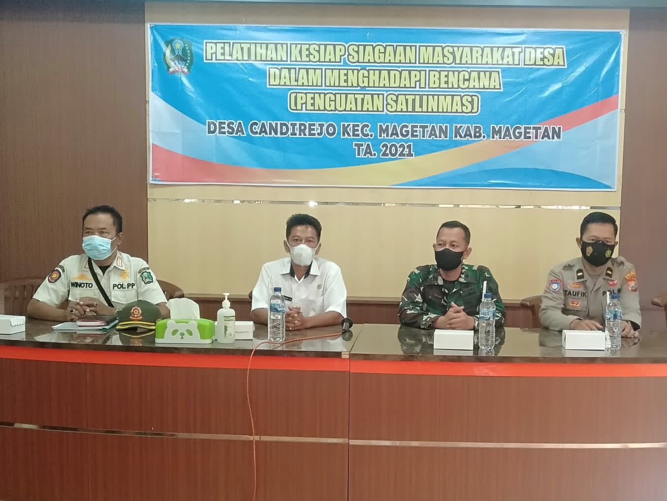 Magetan – Danramil Tipe B 0804/01 Magetan melaksanakan kegiatan pelatihan Kesiap siagaan masyarakat desa menghadapi bencana dan penguatan Satlinmas bertempat di aula kantor Desa Candirejo Kecamatan Magetan Kabupaten Magetan.Rabu (22/09/2021)