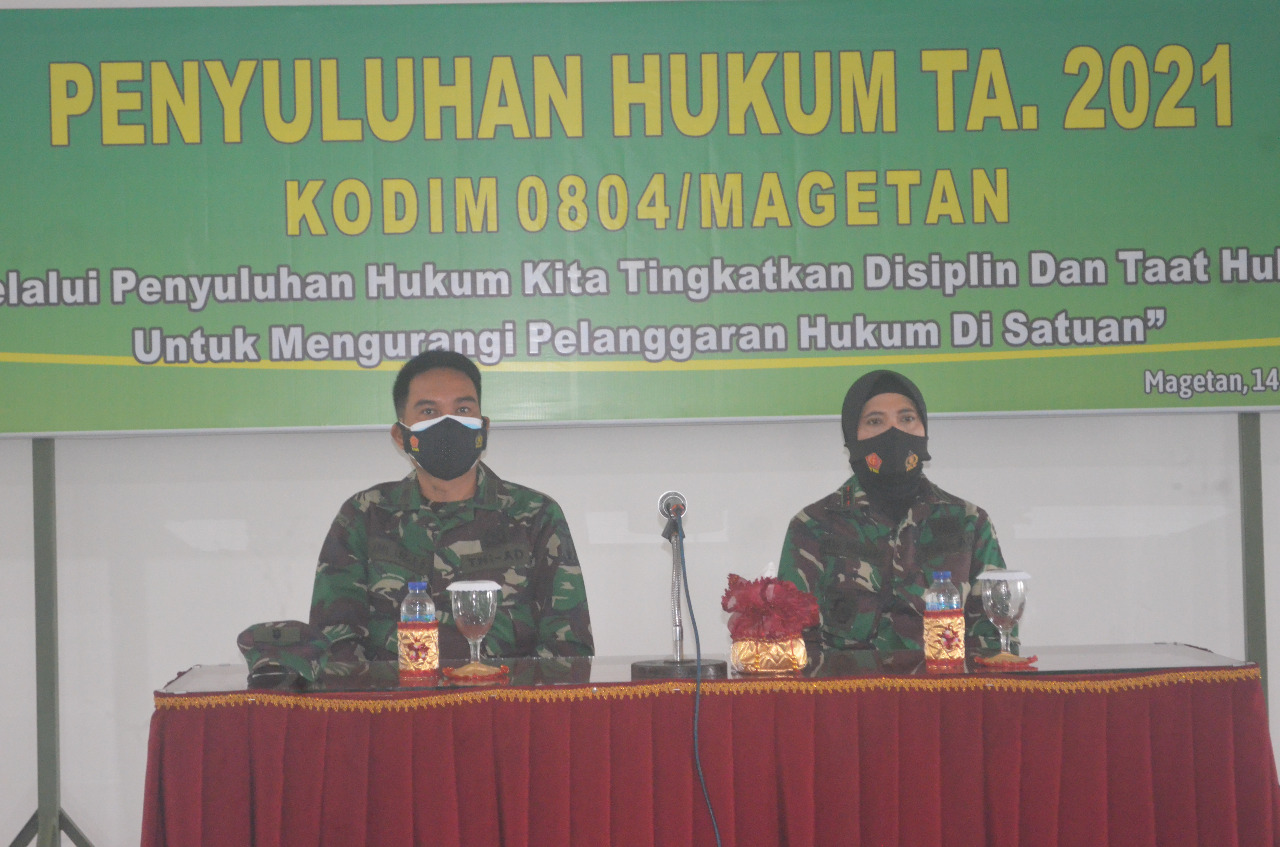 Penyuluhan hukum bagi prajurit TNI AD adalah kegiatan pembinaan prajurit yang diselenggarakan dengan tujuan mewujudkan kesadaran hukum prajurit TNI AD yang lebih baik, sehingga Prajurit TNI AD khususnya Kodim 0804/Magetan berdisiplin, mengetahui, memahami, menghayati sekaligus mematuhi hukum yang berlaku.
