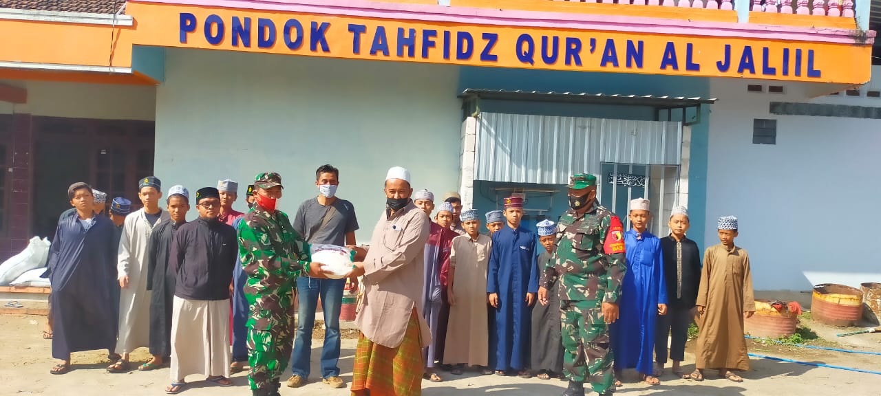 Magetan. Danramil 0804/09 Sukomoro, Kodim 0804/Magetan Kapten Inf Sunaryo di dampingi perwakilan Babinsa menyerahkan bantuan berupa Beras kepada Pondok Pesantren (Ponpes) Tahfiz Qur’an Al Jaliil yang ada di wilayah Kecamatan Sukomoro, Magetan. Jum’at (03/09/2021)