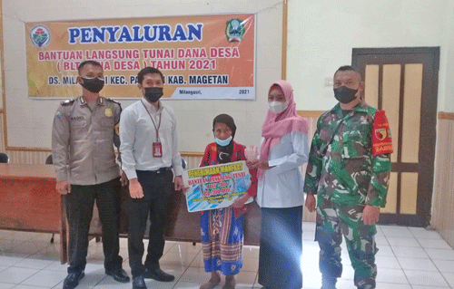 Kegiatan penyaluran BLT Dana Desa tersebut dihadiri oleh Kepala desa Milangasri Bpk Anggit beserta Perangkat Desa, Babinsa Sertu Joko Santoso,Babinkamtib Bripka Radik,Tiem dari Bank Jatim Bpk Alif, Serta 20 orang warga penerima bantuan manfaat.
