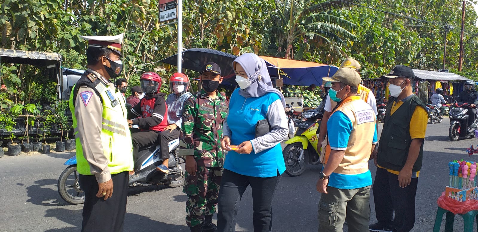 “Pelaksanaan kegiatan Yustisi dan Operasi Penggunaan Masker, selain mengedukasi dan mendisiplinkan masyarakat akan protokol kesehatan, Anggota Koramil bersama Forkopimca juga mengajak akan pentingnya menggunakan masker, karena sebuah keharusan sebagai sebuah upaya untuk memutus mata rantai penyebaran Virus Covid 19”.Pungkas Serda Suroto ( R06 )