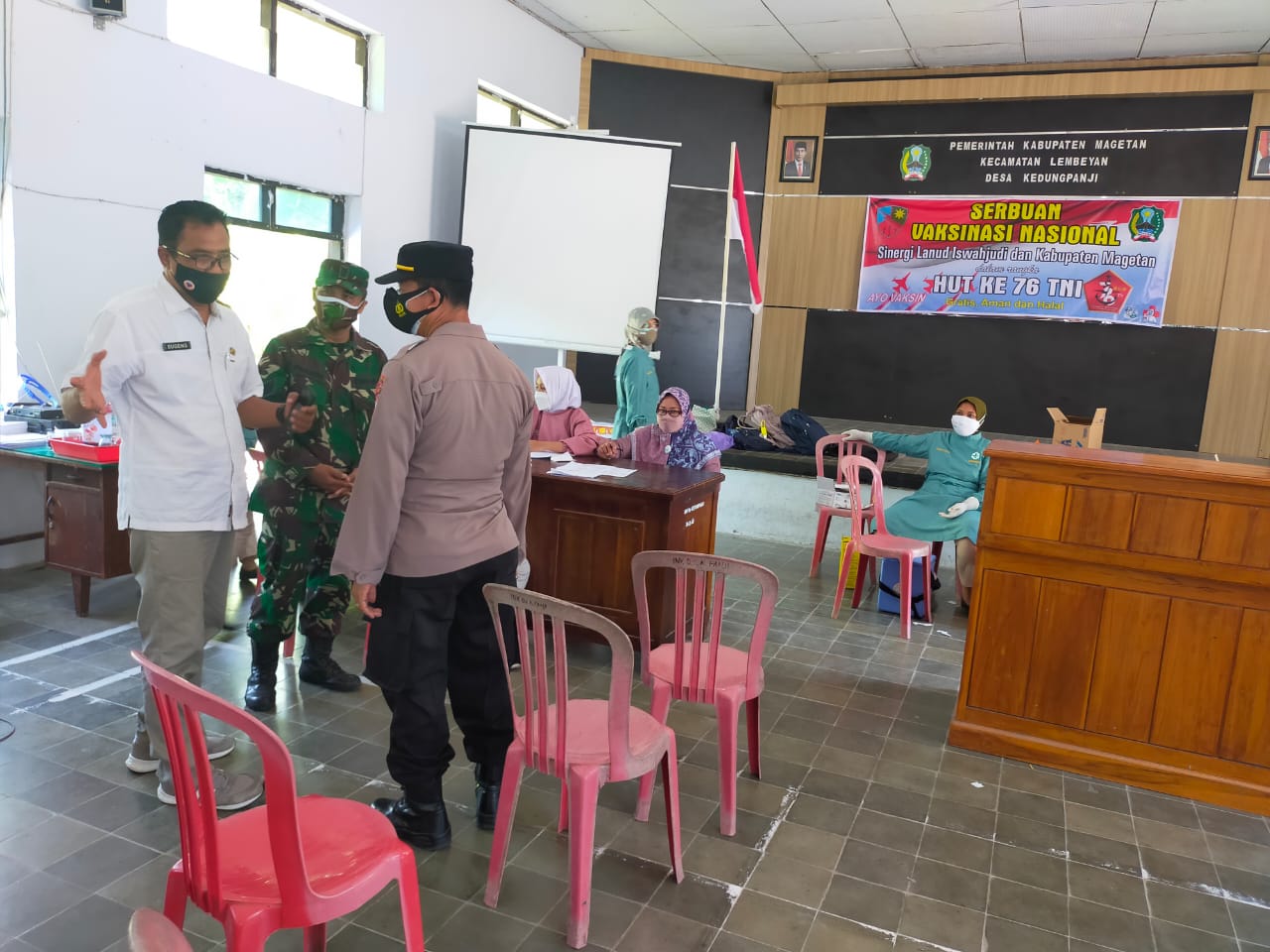 Magetan – Desa Kedungpanji yang terletak di Kecamatan Lembeyan, Kabupaten Magetan mengadakan vaksinasi sebanyak 500 dosis Sinovac untuk warganya. Vaksinasi ini juga menggandeng Pengabdian PKM Lembeyan dengan Masyarakat, Kelompok Lansia – Pra Lansia ke atas yang berasal dari Warga desa Kedungpanji Berlangsungnya vaksinasi ini dimulai pukul 08.00 WIB pagi sampai dengan selesei. Rabu(29/09/2021),