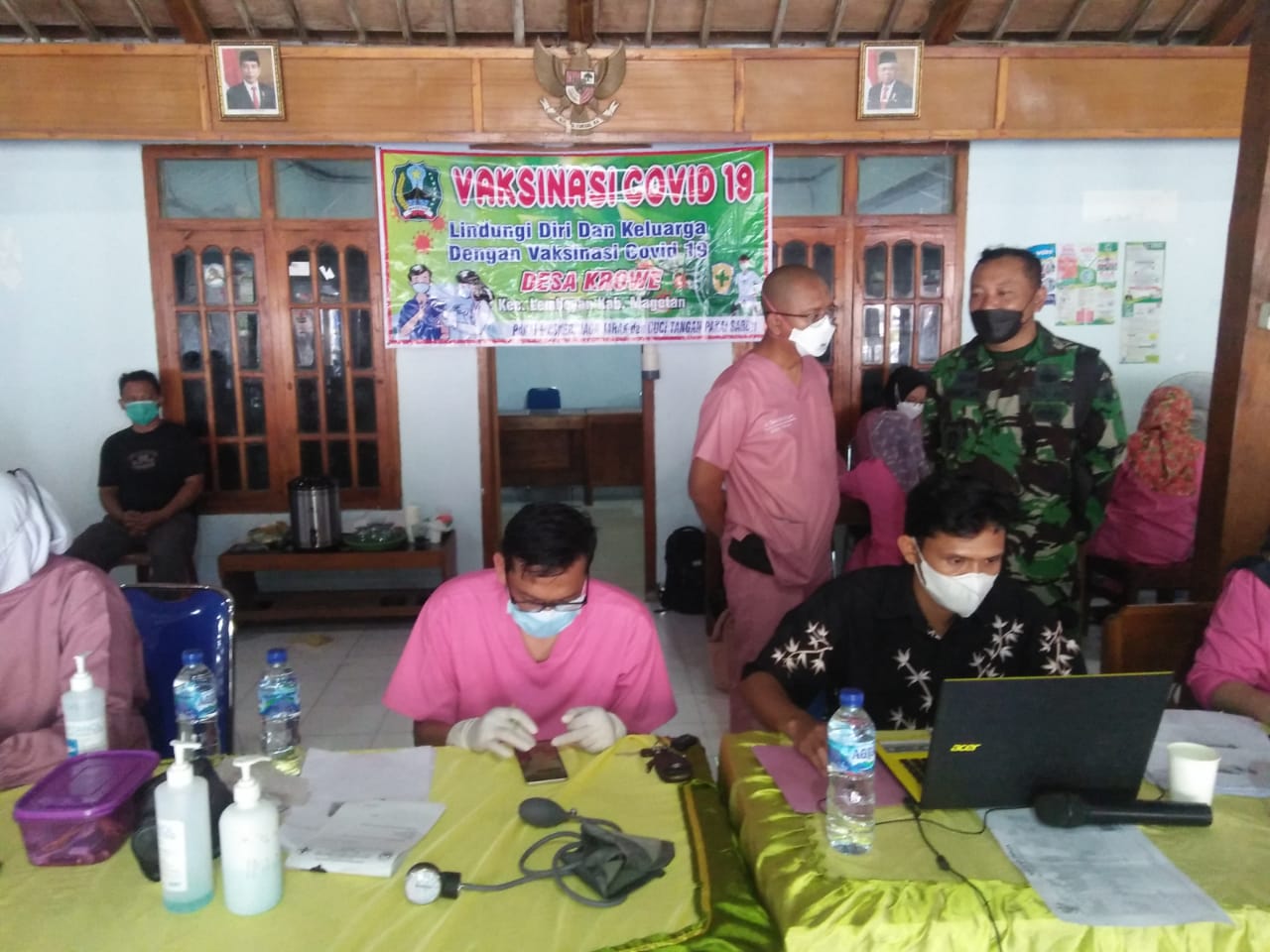 Magetan – Babinsa Koramil Tipe B 0804-12 Lembeyan Serka Suyadi memantau pelaksanaan Vaksinasi Covid-19 Tahap 1 oleh tim NAKES puskesmas lembeyan kepada warga masyarakat desa krowe Kecamatan lembeyan, kab magetan, kamis (30/09/2021)