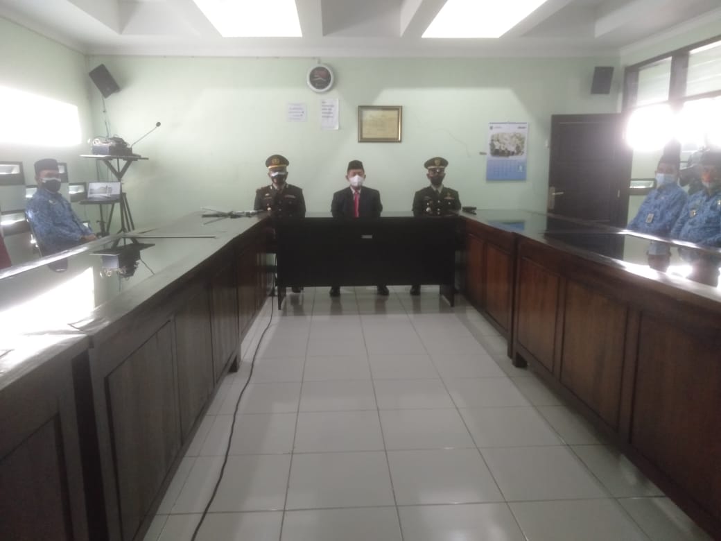 Magetan – Komandan Koramil Tipe B 0804 /01 Magetan Kodim 0804 Magetan Kapten Caj Jemani bersama Forkopimca Magetan melaksanakan kegiatan Upacara Peringatan hari kesaktian Pancasila tahun 2021 secara virtual bertempat di gedung Pertemuan kantor Kecamatan Magetan Kabupaten Magetan.Jumat (01/10/2021)