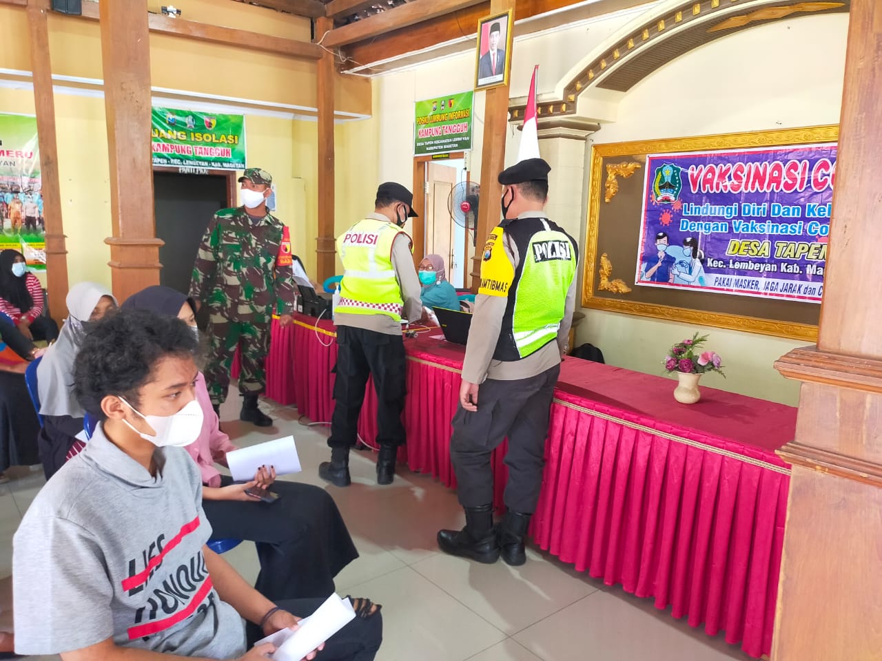 Babinsa Serda Bambang eko mengecek langsung pelaksanaan pemberian Vaksin Covid-19 Tahap I Sinovac dan Tahap II Moderna kepada warga masyarakat desa Tapen. Sebelum divaksin, para penerima vaksin melaksanakan beberapa proses diantaranya, terlebih dahulu melaksanakan pendaftaran, dilanjutkan dengan pemeriksaan screening, kemudian dilakukan penyuntikan vaksin.