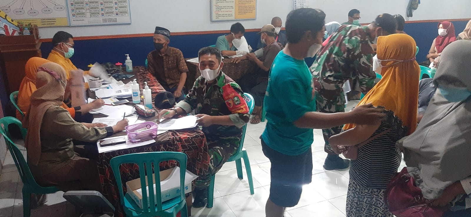 Magetan. Anggota koramil 0804-12/Lembeyan Dampingi Pihak Puskesmas laksanakan penyuntikan vaksin virus Covid -19 di aula kelurahan Lembeyan kulon. Sabtu(16/10/2021)