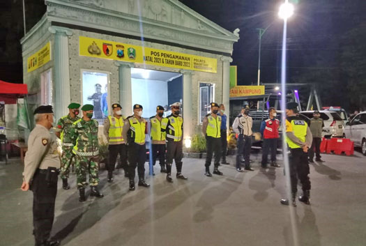 Magetan – Personel gabungan Koramil Tipe B 0804/01 Magetan Kodim 0804 Magetan bersama Polsek Kota Magetan,Damkar Kabupaten Magetan, Pol PP, Dinkes Magetan dan anggota RAPI melaksanakan jaga di Pos Pengamanan NATARU dan Patroli gabungan keliling wilayah Teritorial Kecamatan Magetan Kabupaten Magetan.Senin (27/12/2021) malam.