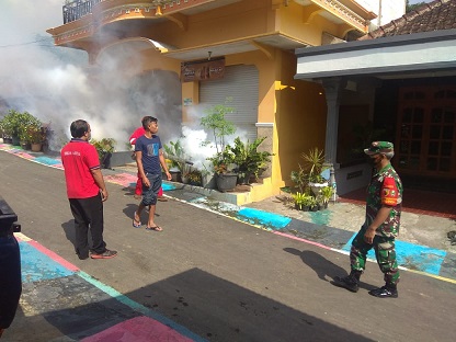 ”Semoga dengan fogging ini bisa terhindar dari penyakit demam berdarah dan demi mencegah DBD Babinsa menghimbau untuk membasmi jentik-jentinya dengan cara 5M Menguras Bersihkan (kuras) tempat penyimpanan air (seperti bak mandi/WC, drum, dll) seminggu sekali, menutup kembali tempayan rapat-rapat setelah mengambil airnya agar nyamuk Demam Berdarah tidak dapat masuk dan bertelur disitu, mengganti air vas bunga dan pot tanaman air setiap hari, mengubur dan buanglah sampah pada tempatnya, plastik, dan barang-barang bekas yang bisa digenangi air hujan”
