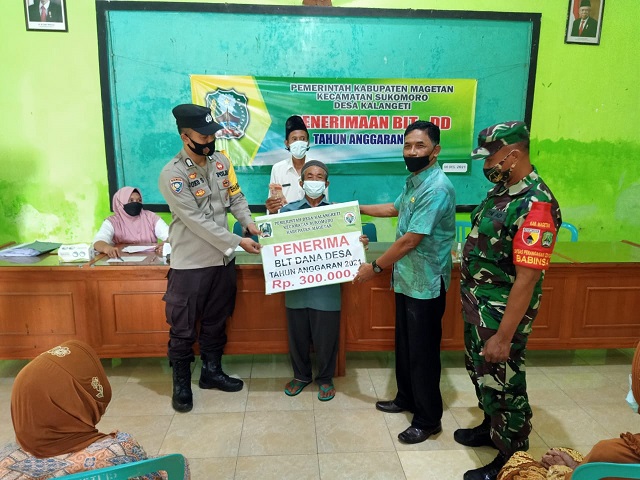 Danramil 09 Sukomoro Kapten Cba (K) Dyah Nilasari, S.sos mengatakan, Penyaluran Bantuan Langsung Tunai Dana Desa (BLTDD) disalurkan kepada warga yang terdampak Pendemi Covid-19 dan masuk kategori keluarga kurang mampu.