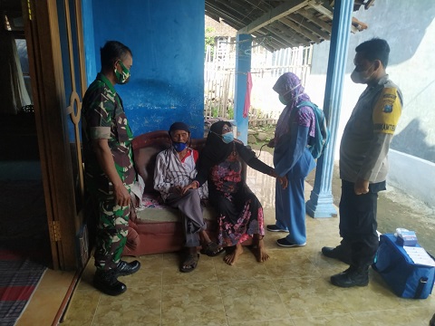 Menindaklanjuti arahan dari Danramil Tipe B 0804/01 Magetan Kapten Caj Jemani, Babinsa bersama Bhabinkamtibmas dan Kepala desa/Kepala kelurahan, mendampingi tim vaksinasi Covid-19 Puskesmas Candirejo melaksanakan vaksinasi dengan door to door di wilayah Kecamatan Magetan Kabupaten Magetan mulai pukul 08.00 WIB sampai selesai.