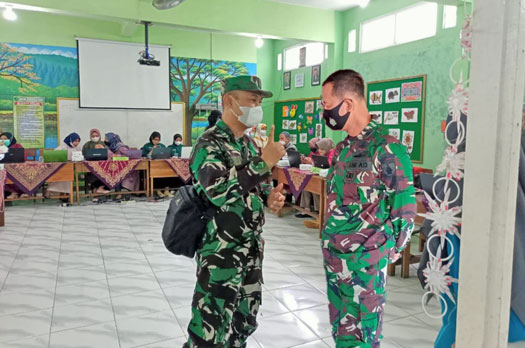Magetan – Komandan Koramil Tipe B 0804/01 Magetan, Kodim 0804 Magetan Kapten Caj Jemani melaksanakan pemantauan kegiatan Vaksinasi Covid-19 dengan sasaran anak/pelajar yang bertempat di MIN 3 Magetan Kelurahan Tawanganom Kecamatan Magetan Kabupaten Magetan.Senin (20/12/2021)