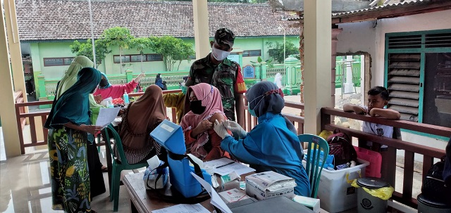 “Sebelum divaksin warga harus cek tensi dan suhu badan oleh petugas kesehatan, input data, screening kemudian baru penyuntikan vaksin. Setelah divaksin peserta harus menunggu kurang lebih 15 menit untuk mengetahui apakah ada reaksi dari vaksin tersebut,” terang Babinsa.