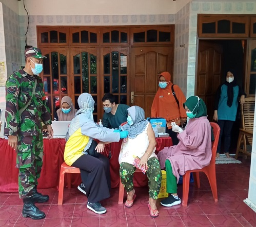 Salah satunya Babinsa Kelurahan Selosari Serda Untung bersama Vaksinator Puskesmas Candirejo Kecamatan Magetan melaksanaan giat vaksin dengan sistem mendatangi rumah Para Lansia (Door to Door) bertempat di kelurahan Selosari.