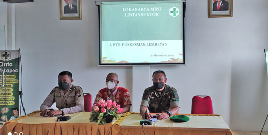 Magetan – Danramil tipe B 0804/12 lembeyan Kapten inf Arif W menghadiri kegiatan acara Lokakarya Mini Lintas Sektoral (LOKMIN LINSEK) Tribulan lV Puskemas Lembeyan yang dilaksanakan di UPTD Puskesmas Lembeyan Kecamatan Lembeyan. Senin (20-12-2021).