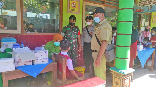 Kegiatan Vaksinasi ini anak-anak didampingi oleh Kepala sekolah, guru pengajar serta para wali murid. “Tujuan kegiatan Vaksinasi ini adalah untuk mencegah dan mengantisipasi penyebaran virus Covid-19 khususnya kepada anak-anak,” terang Babinsa Sertu Soetrisno.