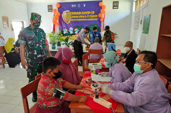 Upaya guna mensukseskan proses vaksinasi tersebut Babinsa Koramil 0804/12 Lembeyan selalu aktif melakukan pendampingan vaksinasi anak usia 6 hingga 11 tahun di desanya.