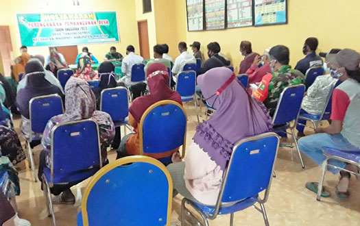 Magetan – Danramil 06/Maospati Kapten INF Sunaryo bersama Babinsa Pelda Suwartoyo menghadiri Undangan Musyawarah Rencana Pembangunan Desa (Musrenbang) di Aula Kantor Balai Desa Tanjungsepreh Kecamatan Maospati, Kabupaten Magetan,Jumat ( 21/1/2022 ).