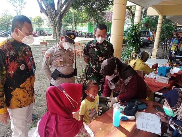 “Pagi hari ini saya datang untuk melihat vaksinasi untuk anak antara 6-11 tahun yang di SDN Banjarpang 1 desa Banjarpanjang ada 37 anak yang divaksin,” ujar Kapten Caj Jemani.