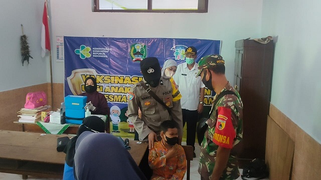 Serda Japar menjelaskan, pendampingan yang dilakukan oleh aparat TNI-Polri ini bertujuan memberikan ketenangan, keamanan dan kenyaman kepada anak-anak SD yang akan divaksin, agar mereka tidak takut dan kegiatan vaksinasi berjalan dengan aman dan lancar.