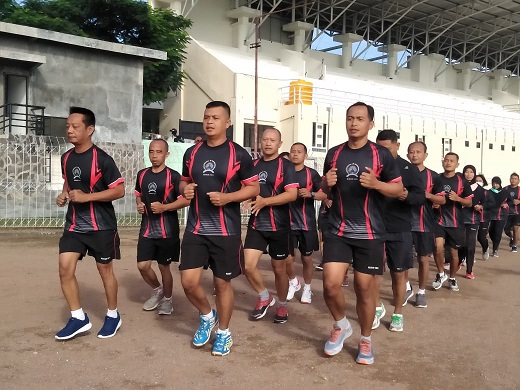 Magetan. Untuk mengisi kegiatan rutin selasa dan kamis pagi yang sudah menjadi program dari Satuan Atas, Anggota Kodim 0804/Magetan melaksanakan olahraga lari aerobik yang dilaksanakan di Gelanggang Olah Raga (GOR) Yosonegoro Magetan. Selasa (04/01/2022).