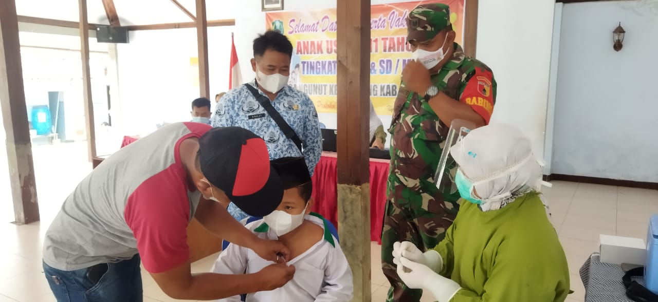 Babinsa Sertu Mujianto juga mengatakan, pihak TNI bersama Polri bersinergi mensuport Pemda dalam mensuport pemerintah daerah dalam akselerasi layanan vaksinasi bagi anak ditingkatan TK/RA dan SD/MI.