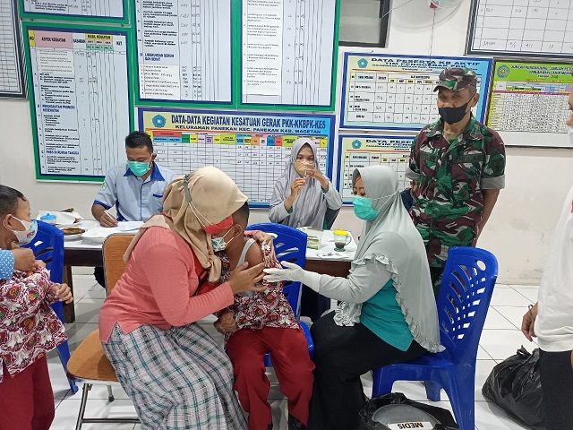 Magetan. Guna mendukung program vaksinasi covid-19 untuk anak, Koramil Tipe B 0804/03 Panekan Kodim 0804/Magetan terus mengakselerasi kegiatan tersebut melalui program Serbuan Vaksinasi. Rangkaian kegiatan vaksinasi dengan sasaran anak usia 6-11 tahun, digelar di sejumlah lokasi secara jemput bola.