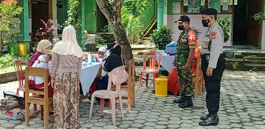 Kehadiran Babinsa dalam kegiatan vaksinasi seperti itu bertujuan untuk melihat secara langsung sekaligus guna memastikan bahwa vaksinasi yang dilakukan di wilayah binaan dapat berjalan aman dan tidak ada kendala yang terjadi.