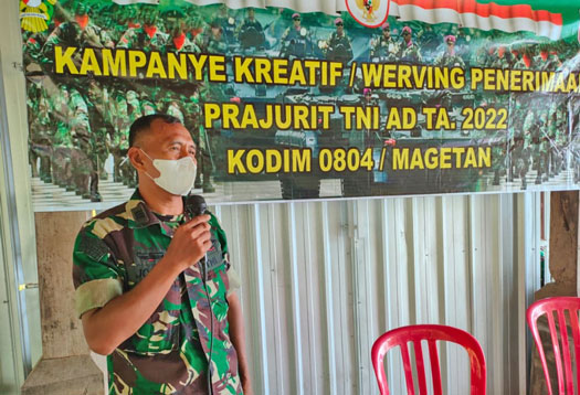 Magetan. Kampanye Kreatif tentang rekrutmen penerimaan Prajurit TNI AD sumber santri dan lintas agama kembali disosialisasikan oleh Kodim 0804/Magetan bekerja sama dengan Ajenrem 081/Dsj. Jum’at (4/2/2022).