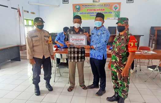 Babinsa desa Bulu dan Babinkamtibmas menghimbau kepada warga binaanya yang menerima BLT DD supaya bisa di gunakan untuk sebaik baiknya supaya bermanfaat. maka sudah menjadi kewajiban kita untuk memberikan contoh kepada masyarakat dengan melakukan hal yang postif terutama memberikan dukungan dan motivasi kepada warga binaan Nya.