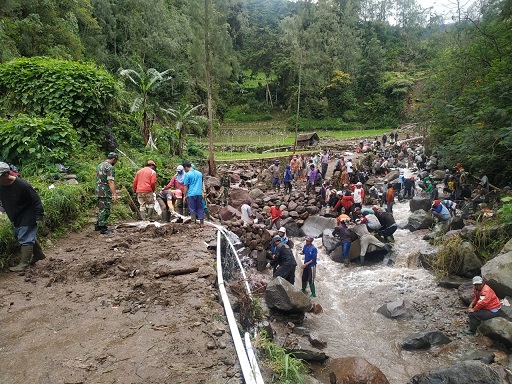 Bersama Warga Masyarakat Anggota Koramil Plaosan Melaksanakan Kerjabakti Perbaikan Pipa Paralon Saluran Air Di Desa Ngancar