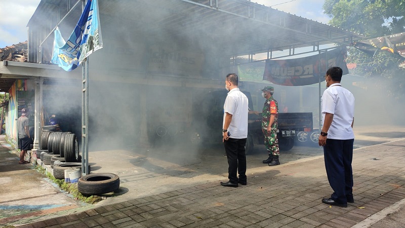 Antisipasi Penyebaran DBD, Babinsa Koramil Tipe B 0804/01 Magetan Bersama Petugas Kesehatan Gencar Lakukan Fogging
