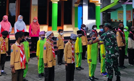 Magetan. Jiwa disiplin sangat perlu ditanamkan sejak dini, mengingat zaman sekarang banyak anak-anak sekolah lebih mementingkan bermain game di Handphone. Oleh sebab itu Sertu Mujiono Babinsa Balegondo Posramil Ngariboyo, Kodim 0804/Magetan memberikan materi Peraturan Baris Berbaris (PBB) kepada siswa-siswi Madrasah Ibtidaiyah Alastuwo, Desa Balegondo, Kec. Ngariboyo, Kab. Magetan. Jum’at (25/2/2022)