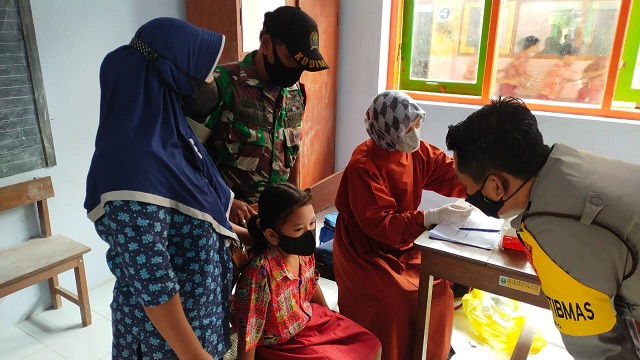 “Kegiatan vaksinasi untuk anak usia 6 hingga 11 tahun dioptimalkan dengan harapan seluruh warga baik dewasa maupun anak-anak bisa mendapatkan vaksinasi dengan mudah sehingga penyebaran virus Covid-19 dapat diteka,” ujar Serda Rudi Hartono