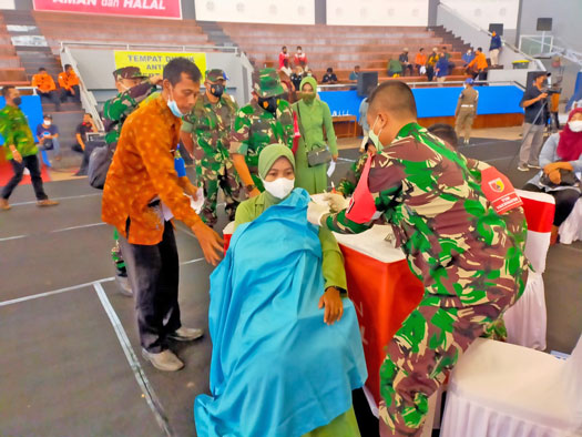 “Kehadiran anggota TNI-POLRI selain bertugas untuk pengamanan juga untuk mengingatkan warga akan pentingnya menerapkan protokol kesehatan dan memastikan jalannya vaksinasi dengan tetap menerapkan protokol kesehatan yang ketat.” terang Kapten Caj Jemani.