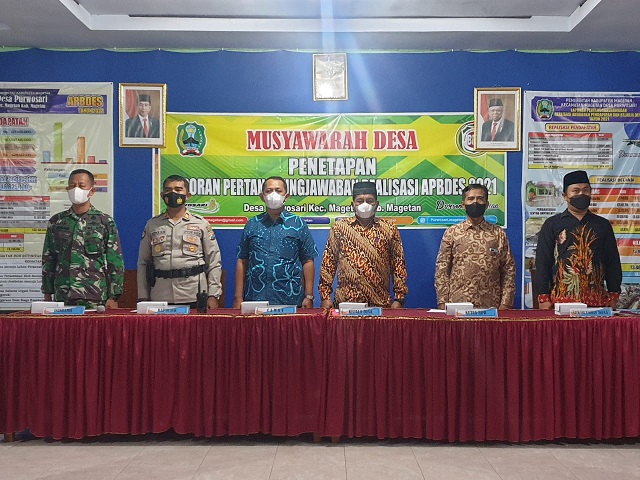 Magetan, Komandan Koramil Tipe B 0804/01 Magetan Kodim 0804 Magetan Kapten Caj Jemani bersama Forkopimca Magetan menghadiri pelaksanaan musyawarah desa penetapan laporan pertanggungjawaban realisasi APBDes Tahun Anggaran 2021 bertempat di balai desa Purwosari Kecamatan Magetan Kabupaten Magetan.Kamis (31/03/2022) Kegiatan tersebut dihadiri oleh Camat Magetan Tri admadi S. Sos,Komandan Ramil Tipe B 0804/01 Kapten CAJ Read More