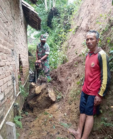 Dalam bencana alam tanah longsor tersebut terjadi di wilayah pemukiman warga,” kata Serka Sugianto.