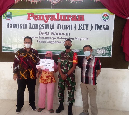 Magetan – Babinsa Kauman Koramil 0804-07/Karangrejo Koptu Fajar Setiyono bersama dengan Bhabinkamtibmas melaksanakan pemantauan, pendampingan dan pengamanan penyaluran BLT DD di Desa Kauman Kecamatan Karangrejo Kabupaten Magetan. Rabu (02/03/2022)