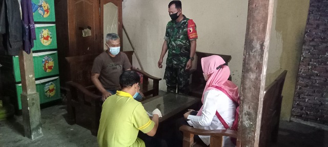 Magetan. Babinsa Koramil 0804/09 Sukomoro Sertu Suyoto bersama Perangkat Desa dan Tim kesehatan dari Puskesmas Sukomoro mendatangi rumah salah satu warga yang di duga mengalami ODGJ (Orang Dalam Gangguan Jiwa) yang sering meresahkan keluarganya tepatnya di Desa Kentangan. Kamis (03/03/22)
